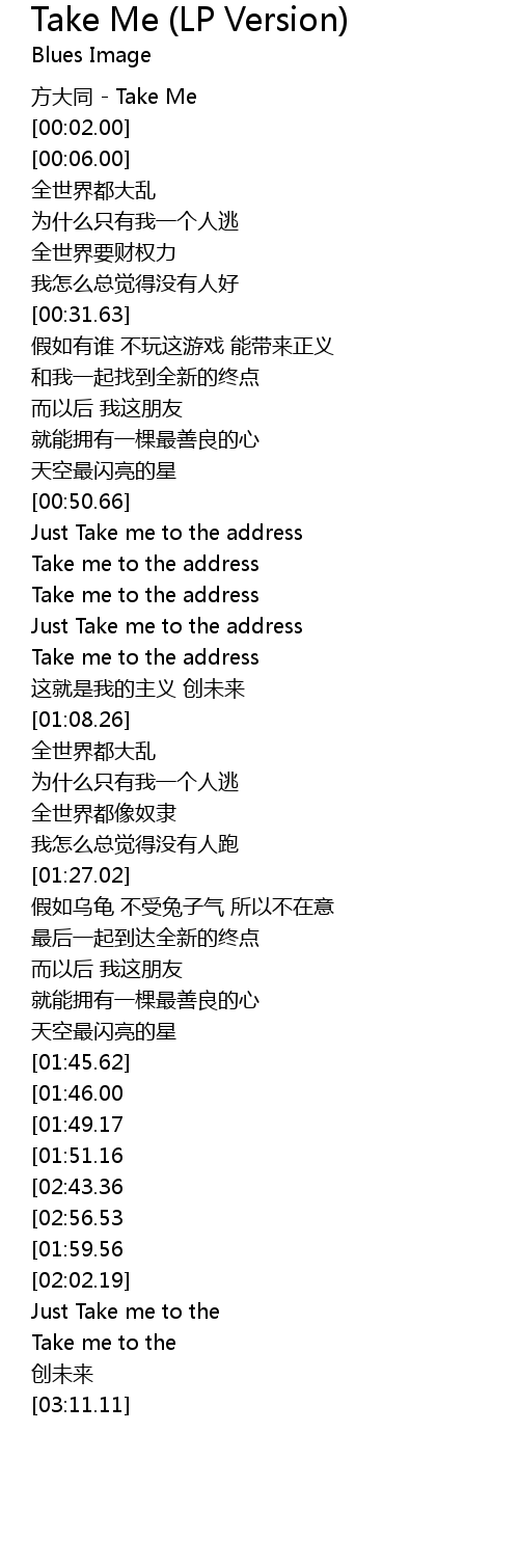 | [00:00.00] | fāng dà tóng Take Me |