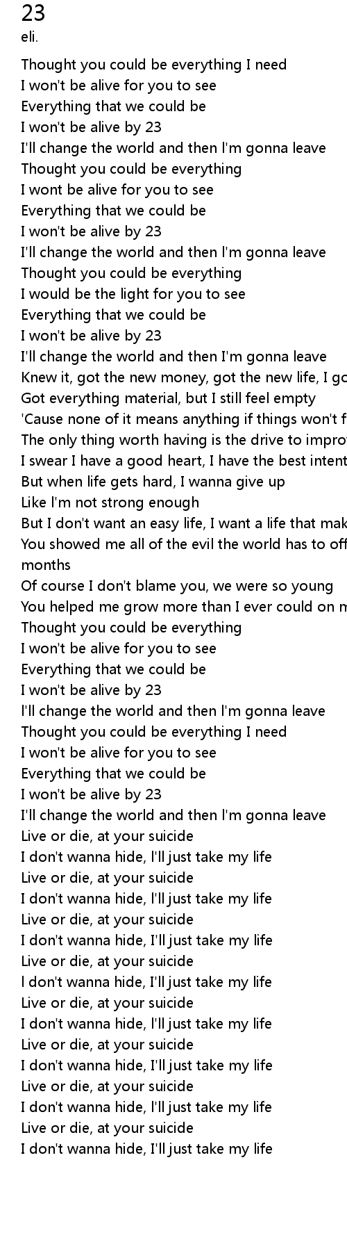 | [00:48.632] | I won't be alive by 23 |