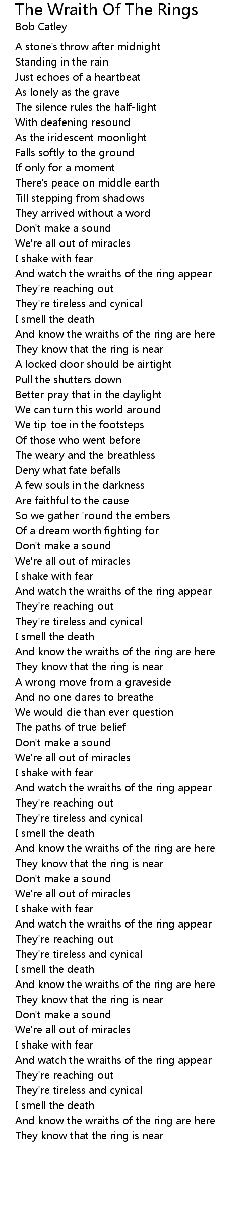 The Wraith Of The Rings 歌词