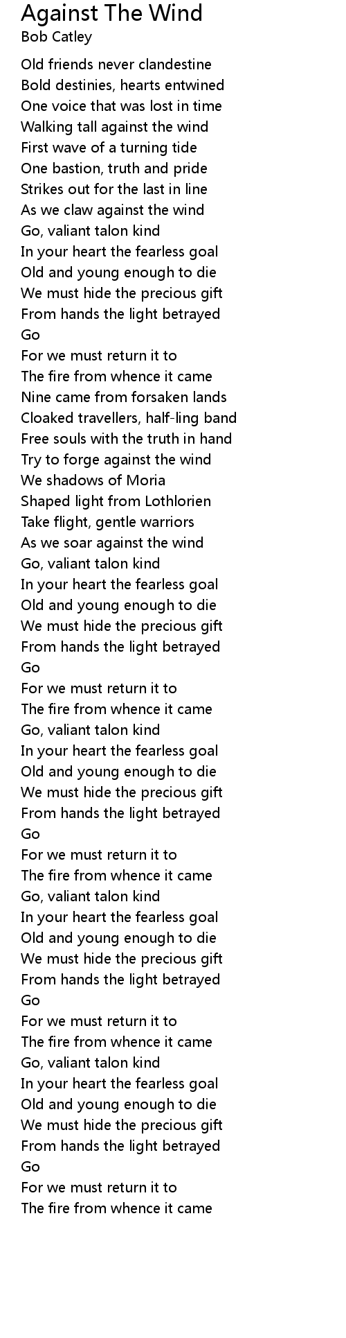 As we soar against the wind |
