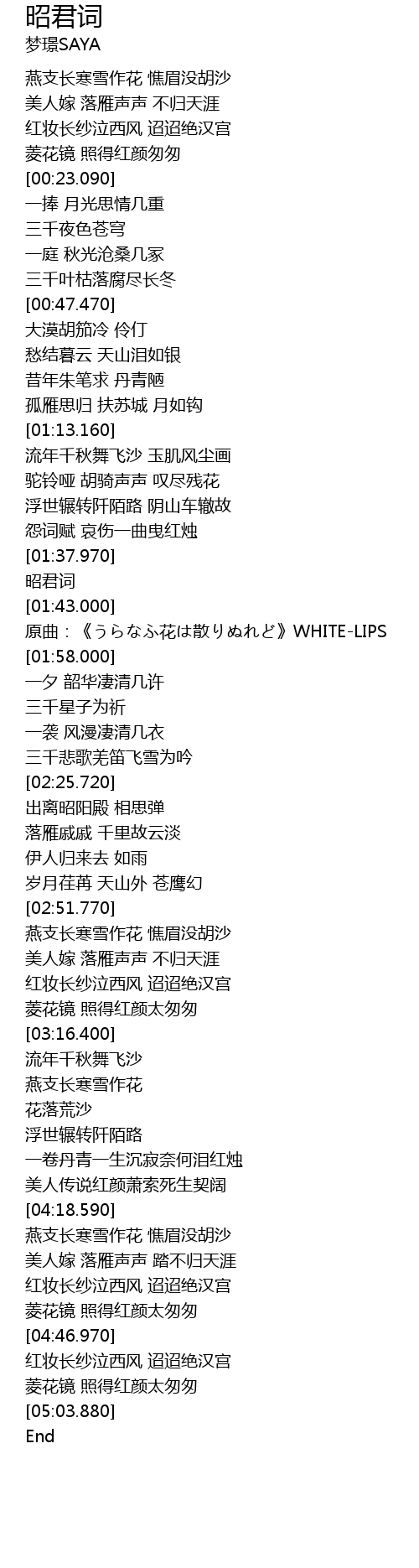 | [03:03.980] | 红妆长纱泣西风 迢迢绝汉宫 |
