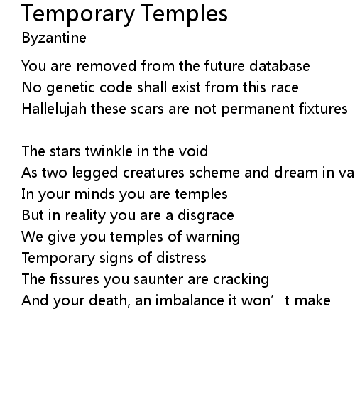 | 歌曲 | Temporary Temples |