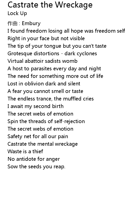 | Castrate the mental wreckage | |