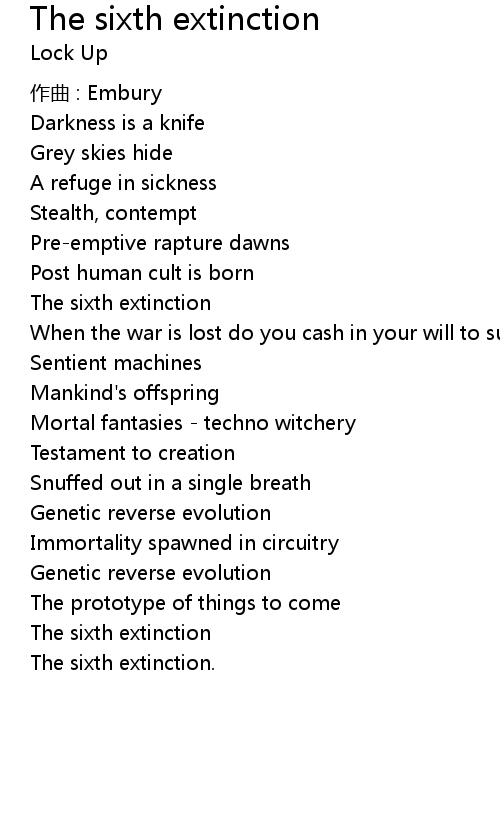 | When the war is lost do you cash in your will to survive - the sixth extinction | |