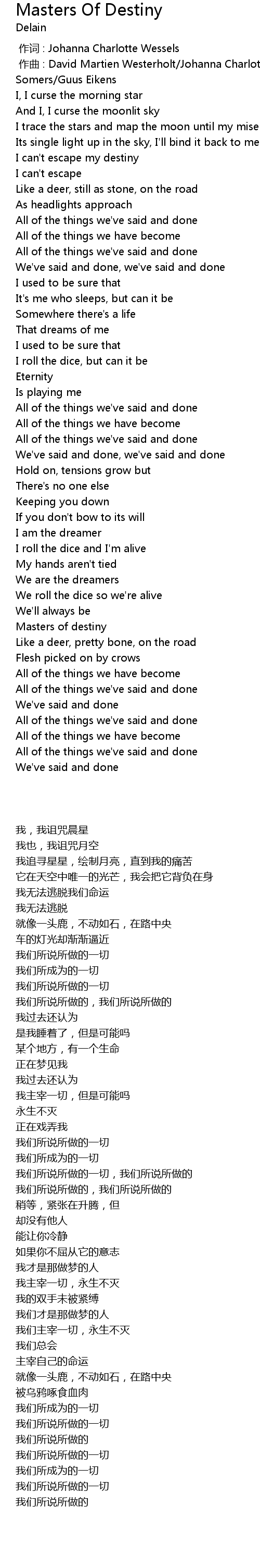 | [00:01.000] | 作曲 : David Martien Westerholt/Johanna Charlotte Wessels/Timo Somers/Guus Eikens |