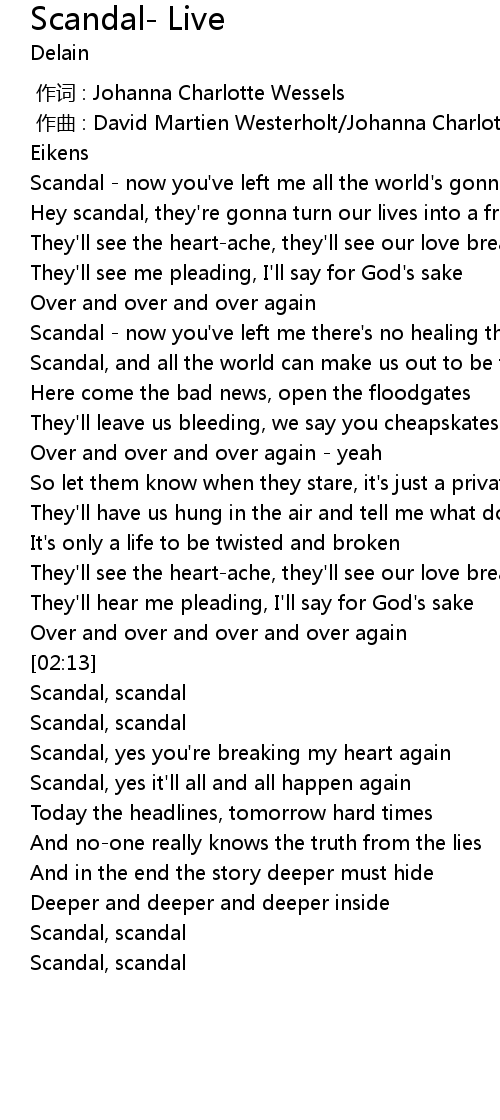 | [02:51] | Scandal, yes you' re breaking my heart again |