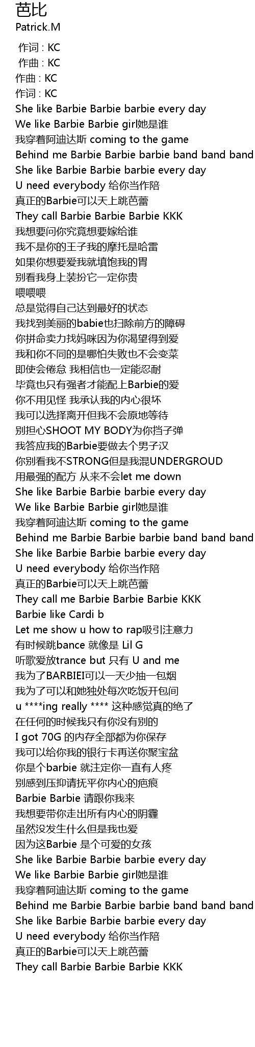 | [02:56.389] | They call Barbie Barbie Barbie KKK |