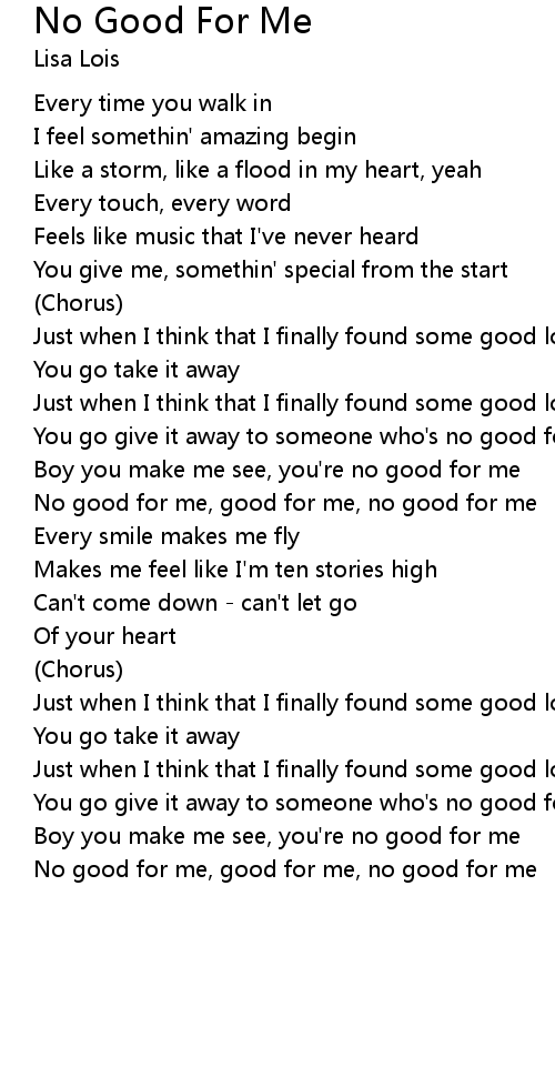 | No good for me, good for me, no good for me |