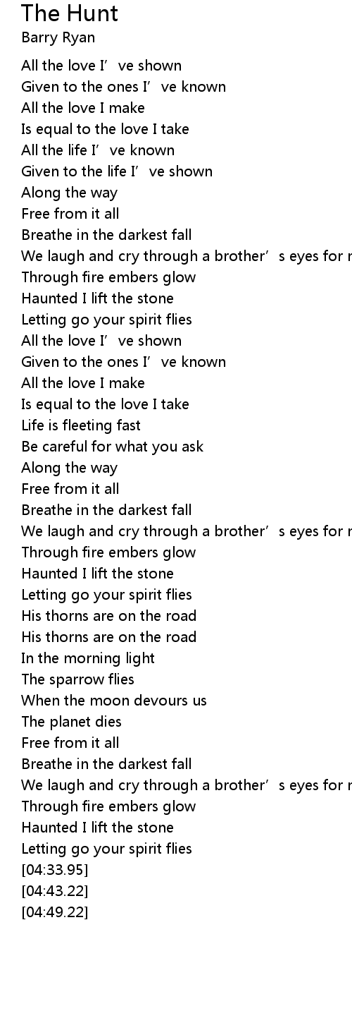 | [04:09.13] | We laugh and cry through a brother’s eyes for now |