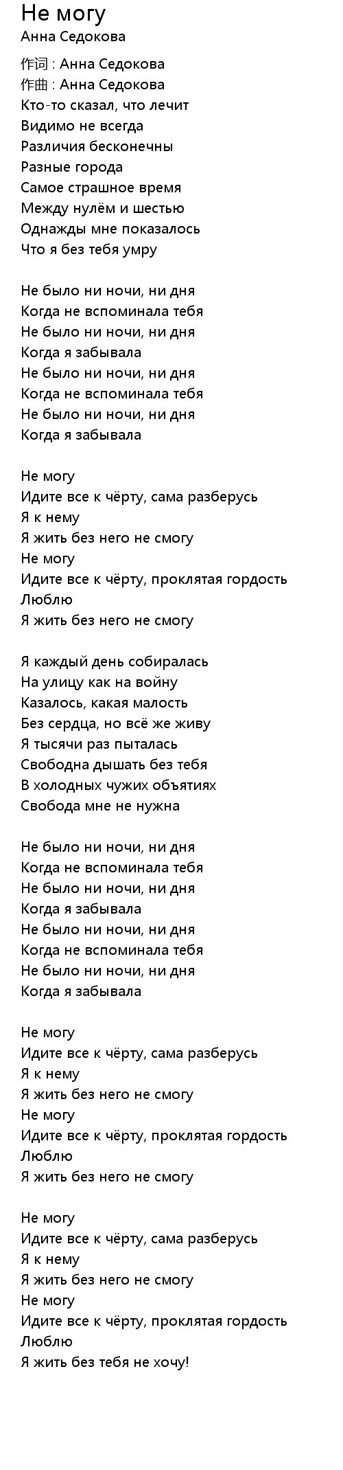 Не могу 歌词