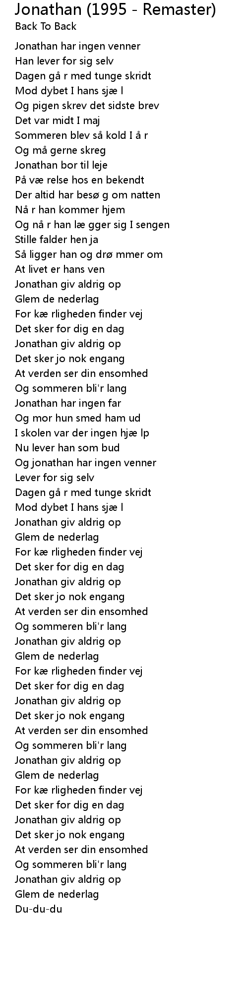 | [01:47.98] | Og jonathan har ingen venner |