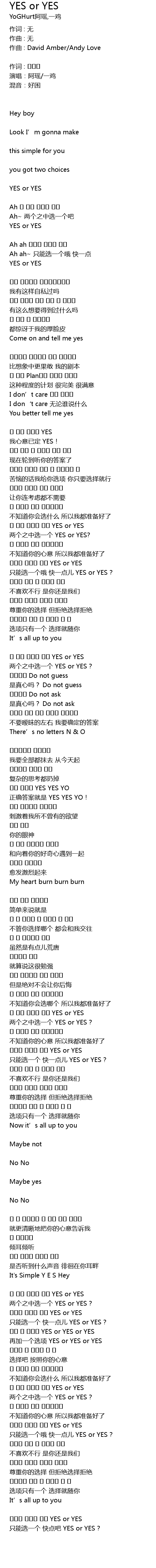 | liang ge zhi zhong xuan yi ge YES or YES? | |