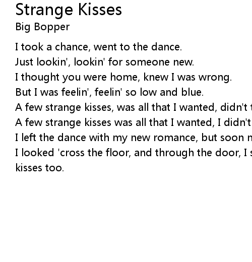 | I looked 'cross the floor, and through the door, I saw you lookin' for strange kisses too. |