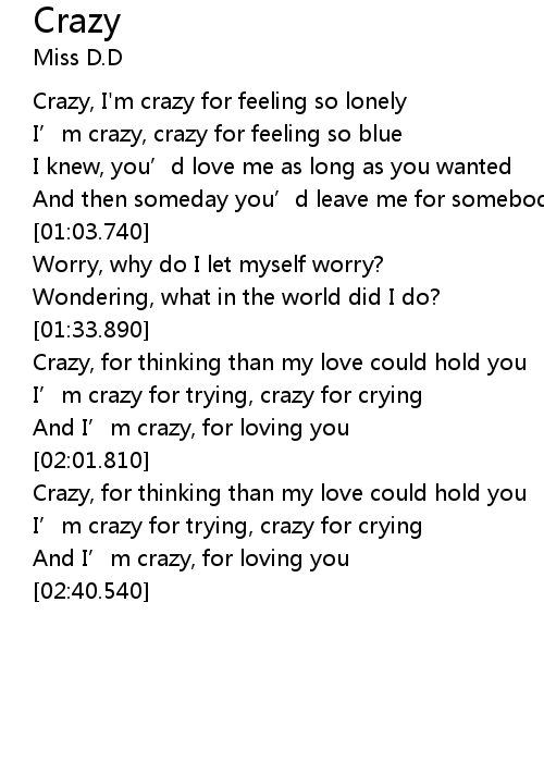 | [01:56.270] | And I' m crazy, for loving you |