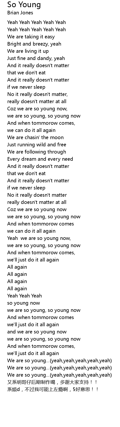 | [03:28.44] | We are so young... yeah, yeah, yeah, yeah, yeah |