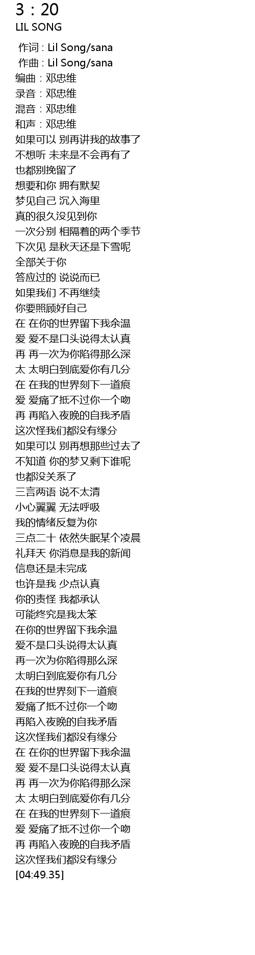 | [00:00.000] | zuò cí : Lil Song sana |