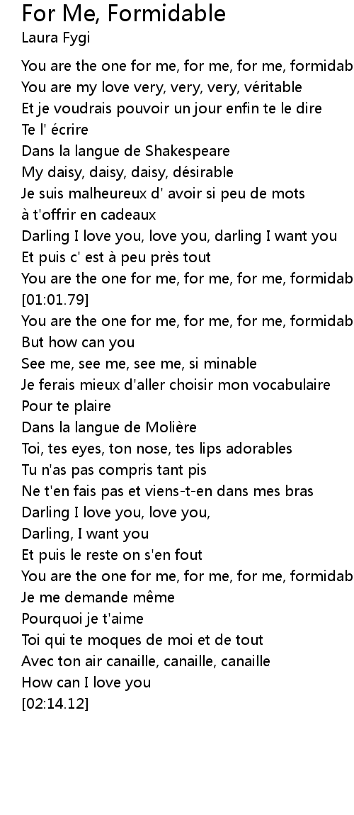 | [00:07.32] | You are the one for me, for me, for me, formidable |