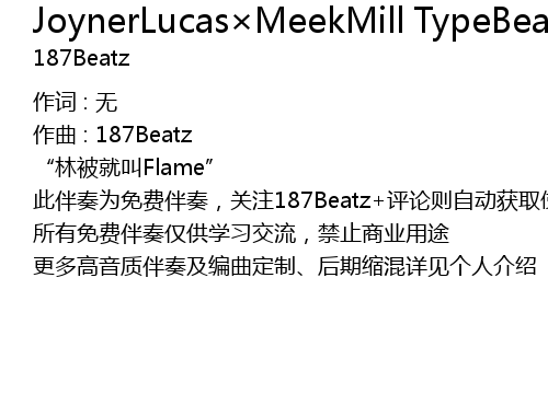 | 此伴奏为免费伴奏,关注187Beatz+评论则自动获取使用权 | |