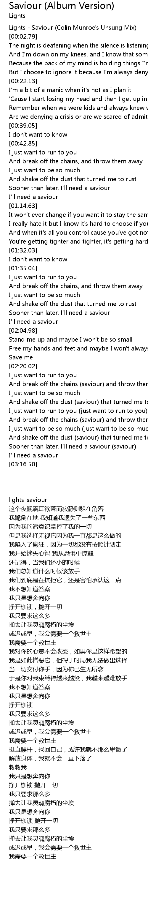 Lights - Saviour (Colin Munroe's Unsung Mix) |