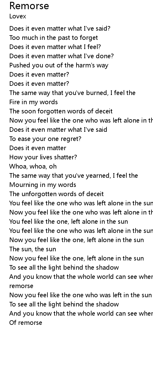 | And you know that the whole world can see when you dry your heartless tears of remorse | |