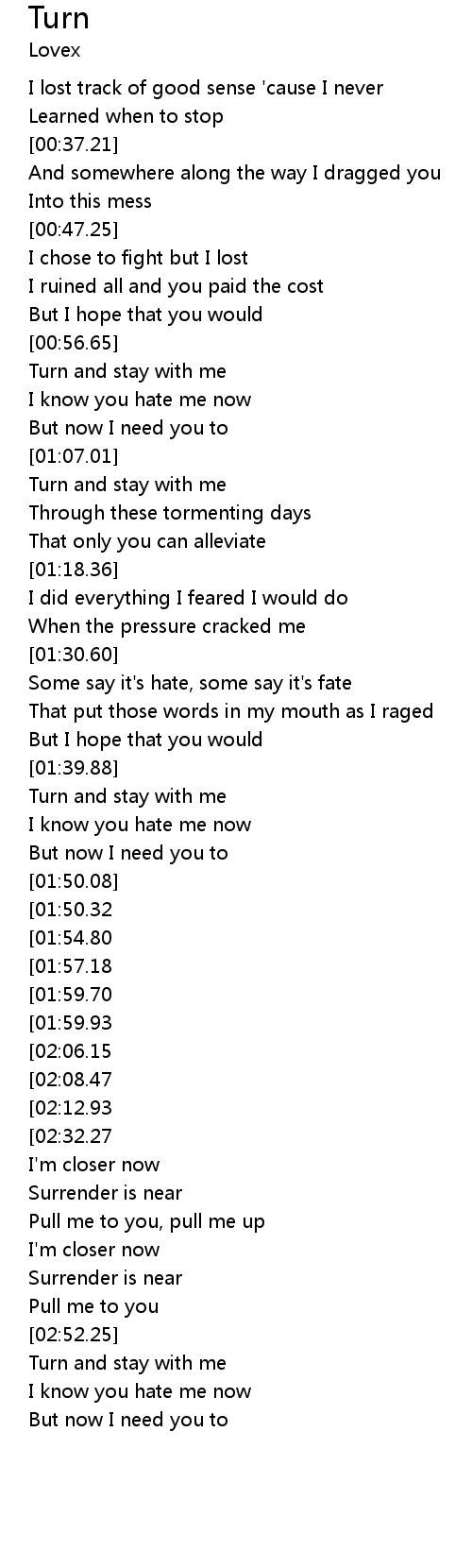 | [01:40.17] | Turn and stay with me |