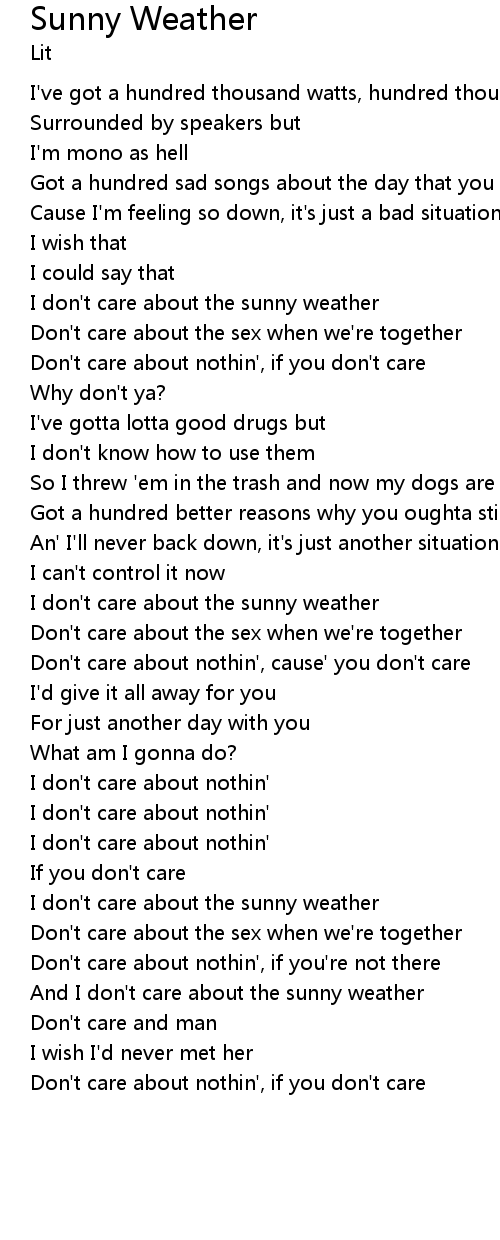 | I don't care about the sunny weather | |
