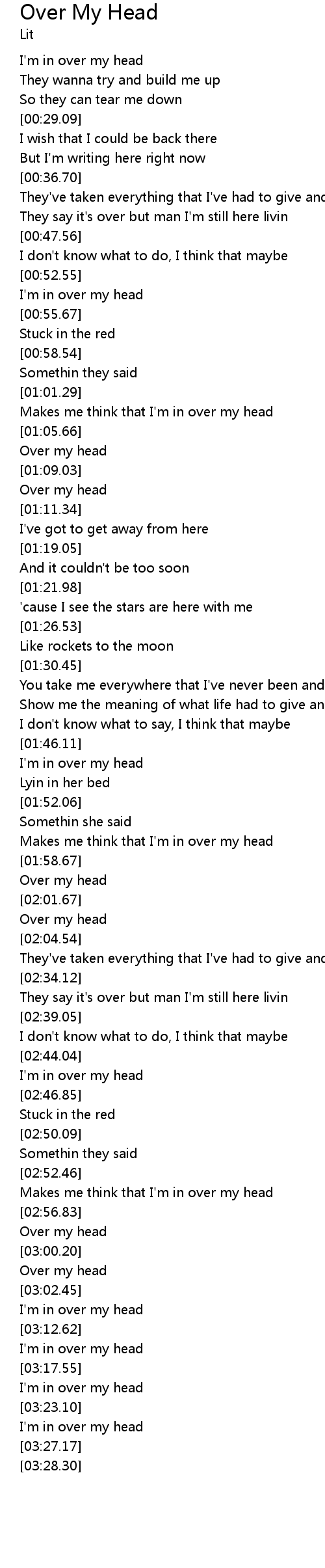| [02:58.58] | Over my head |