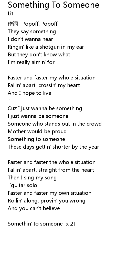 | Somethin' to someone [x 2] |