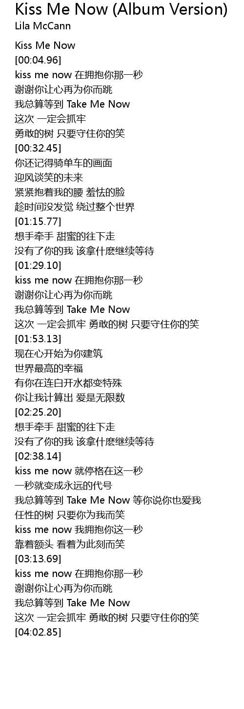 | [02:39.18] | kiss me now 就停格在这一秒 |