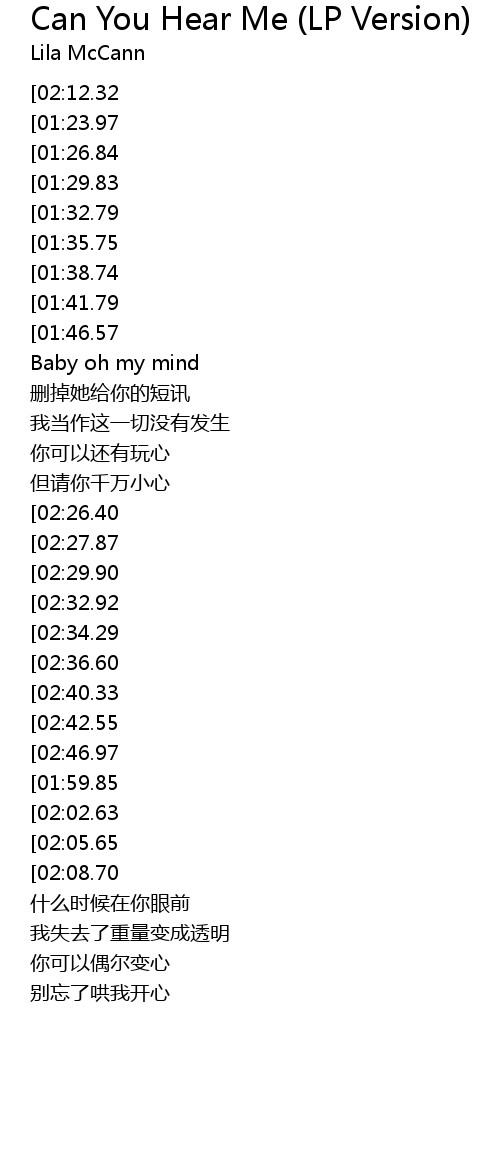 | [00:08.00][02:12.32][03:39.75] | guo xin qi Can You Hear Me |