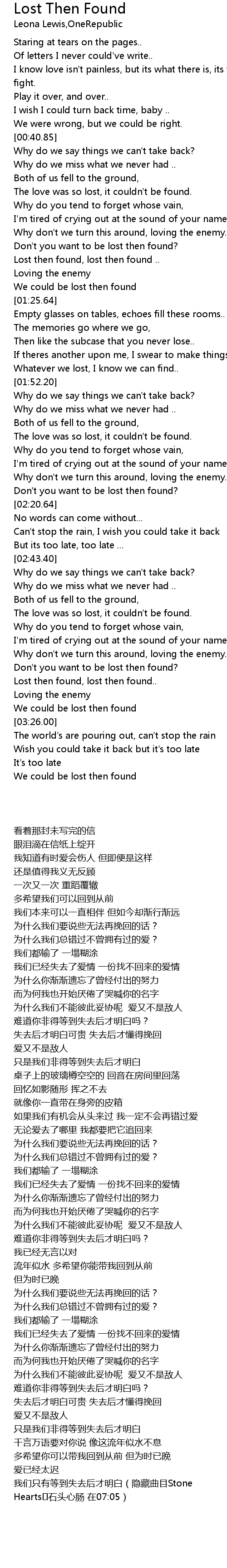 Lost then found, lost then found .. |