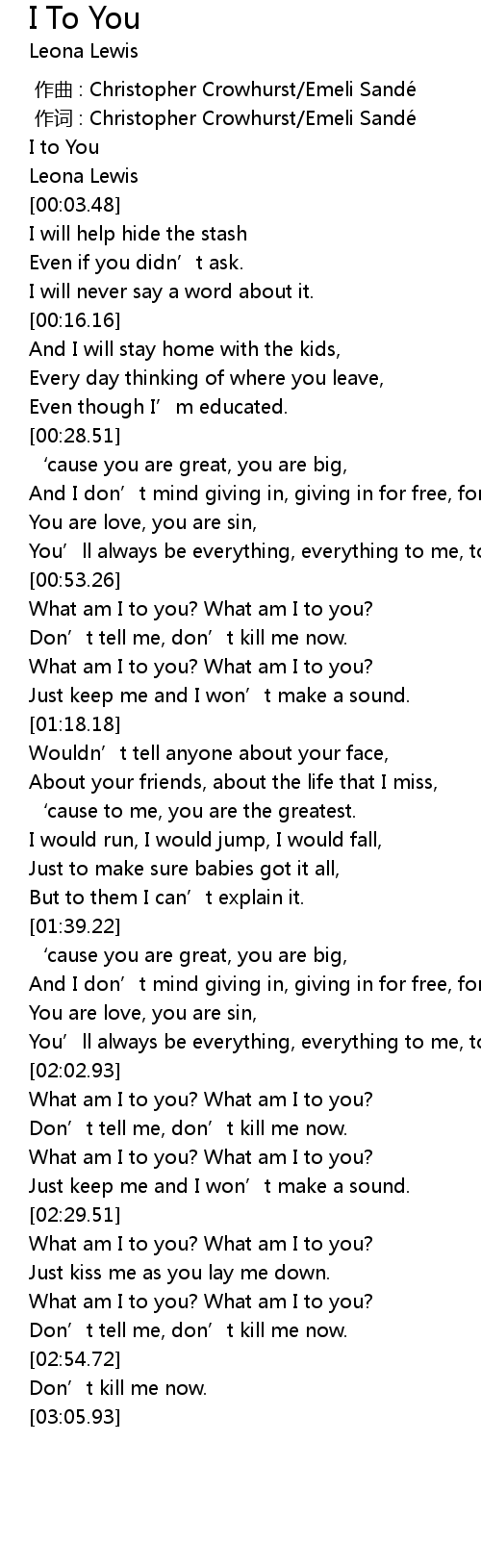 | [00:00.00] | 作曲 : Christopher Crowhurst/Emeli Sandé |