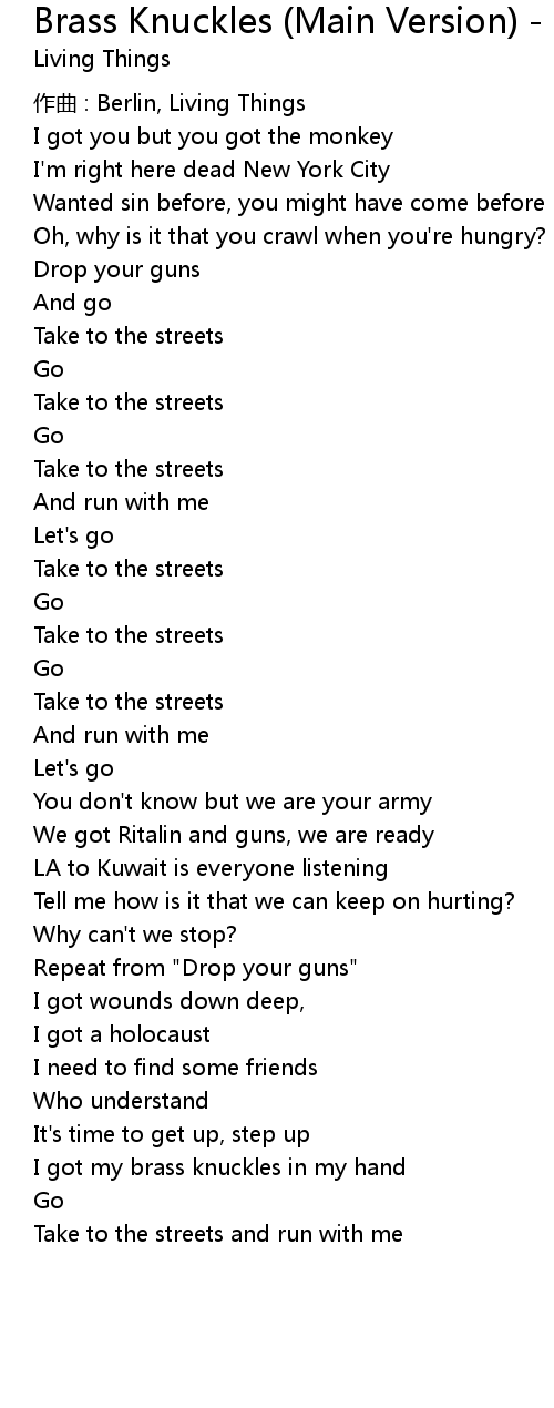 | 歌曲 | Brass Knuckles (Main Version) - Main Version |