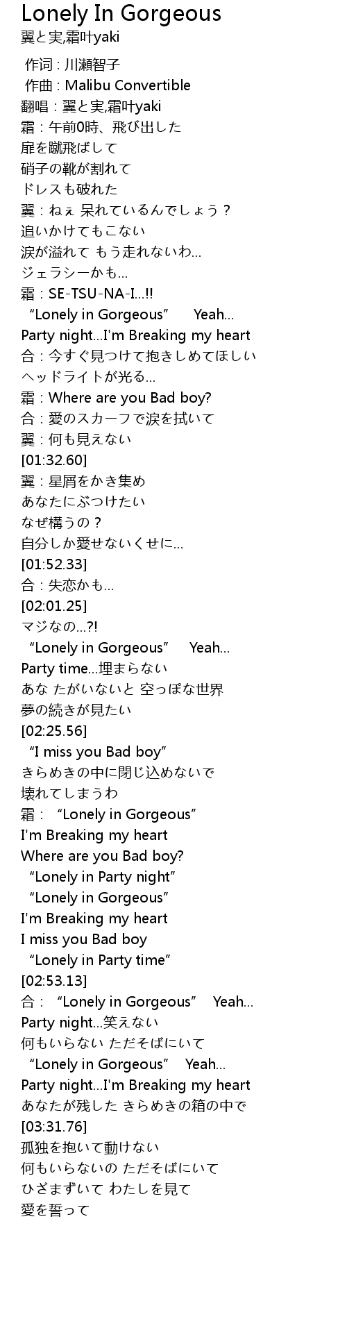 | [03:16.33] | “Lonely in Gorgeous” Yeah... |