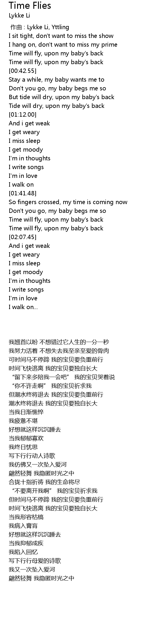 | [00:37.20] | Time will fly, upon my baby' s back |