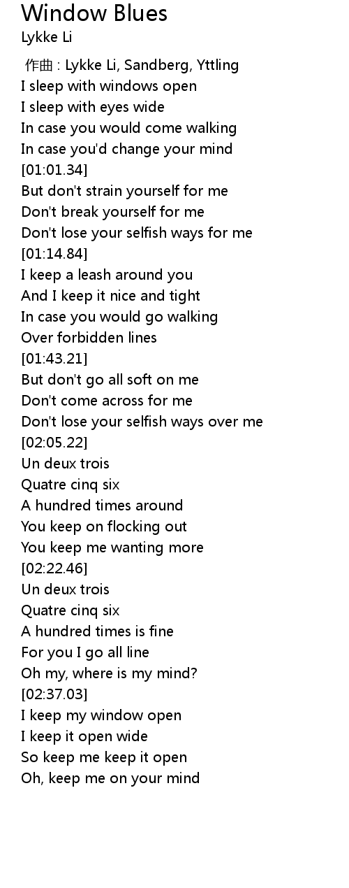 | [00:43.07] | I sleep with windows open |
