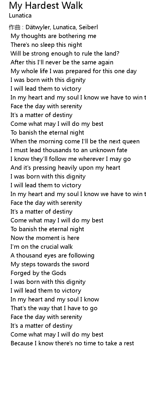 | 歌曲 | My Hardest Walk |