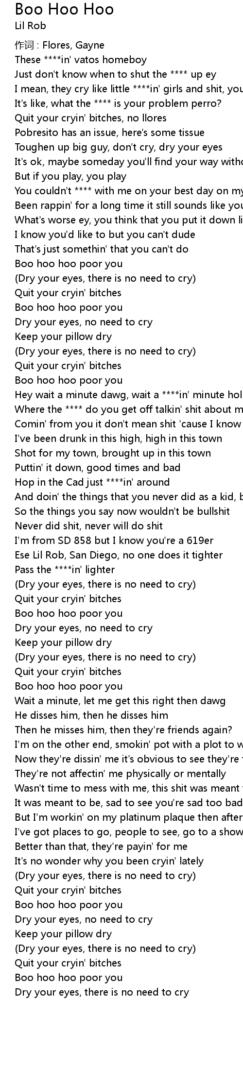 | 歌曲 | Boo Hoo Hoo |
