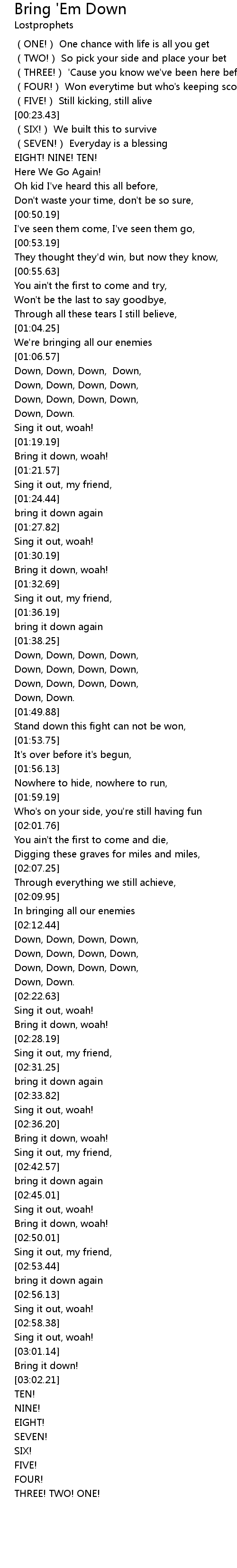 | [02:13.63] | Down, Down, Down, Down, |
