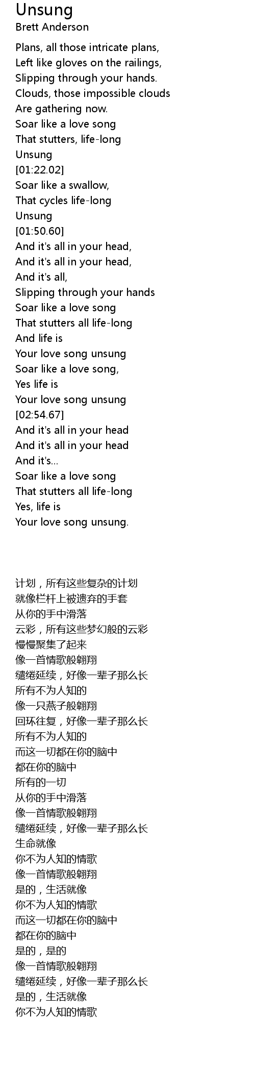 Your love song unsung. |