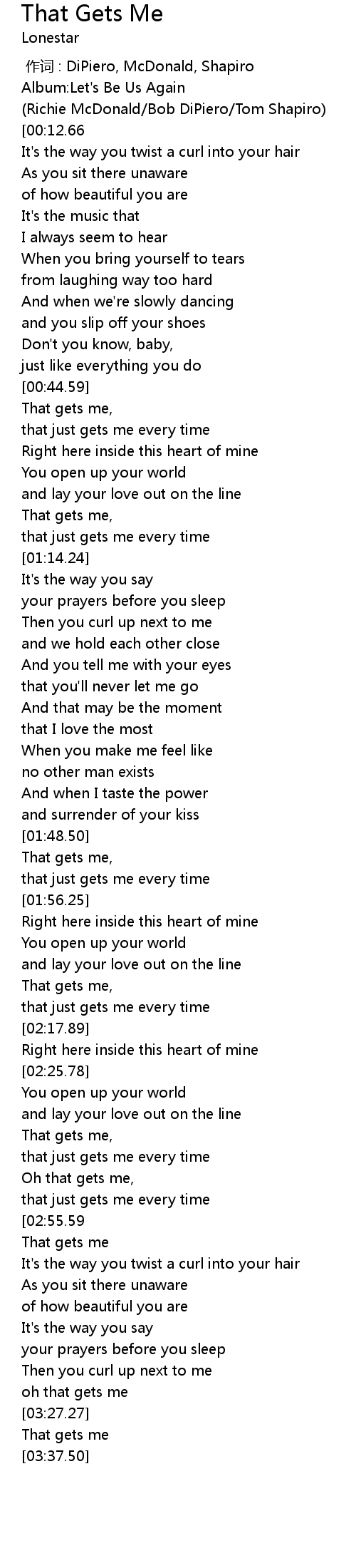 | [03:04.57] | It' s the way you twist a curl into your hair |