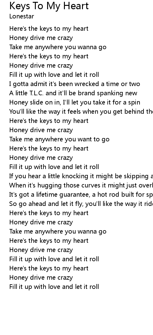 Here's the keys to my heart |