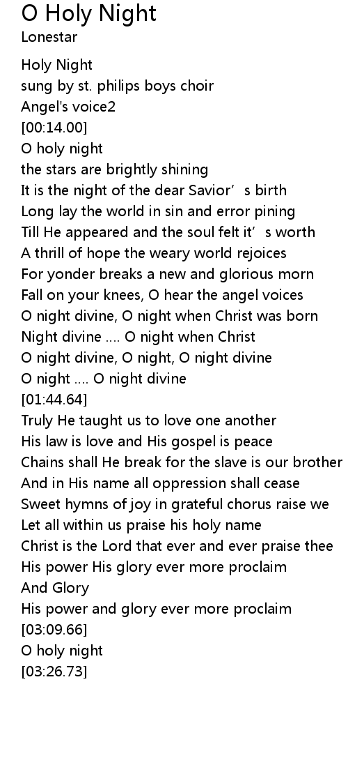 | [01:19.82] | Night divine . O night when Christ |