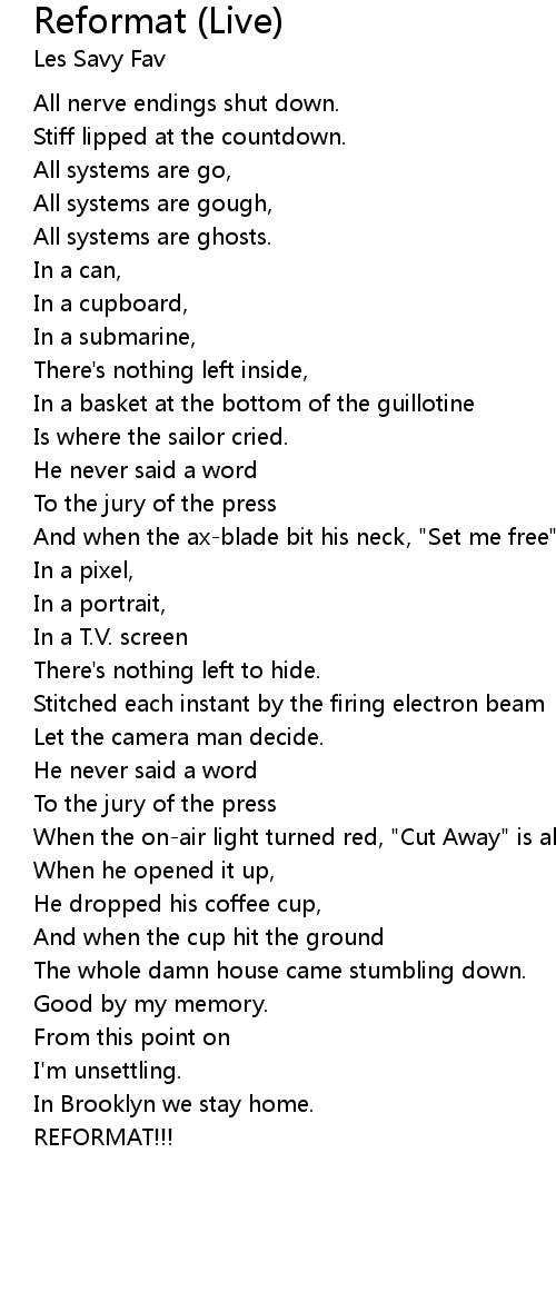 Reformat (Live) 歌词