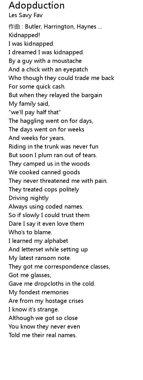 | I was kidnapped. | |