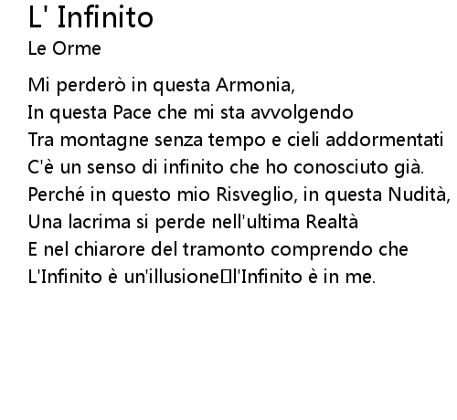 | L' Infinito e un' illusione l' Infinito e in me. |