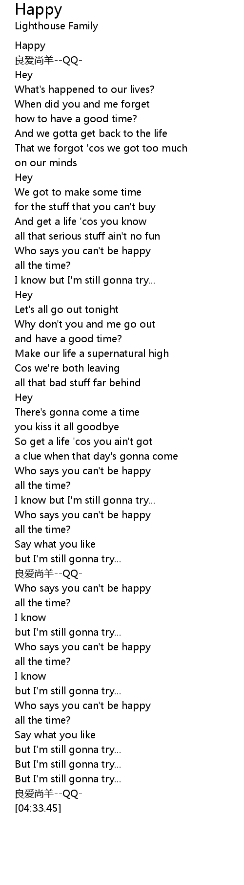 | [02:33.17] | Who says you can' t be happy |