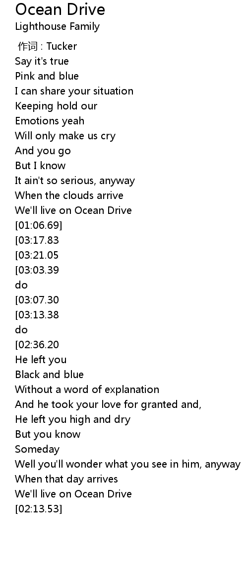 | [01:03.67] | We' ll live on Ocean Drive |