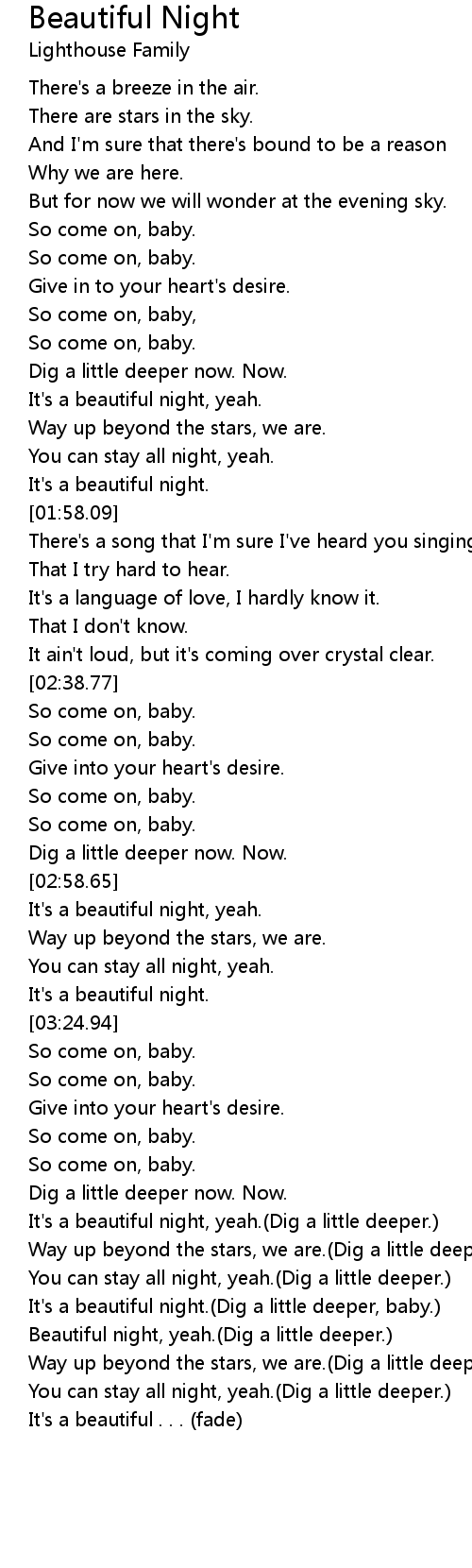 It's a beautiful night, yeah.(Dig a little deeper.) |