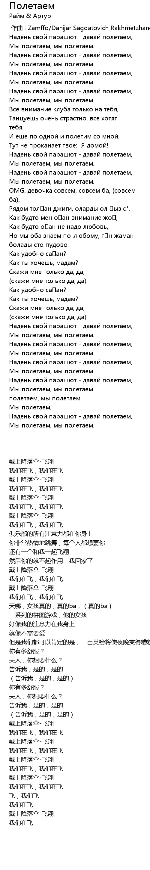 | [02:22.22] | Надень свой парашют - давай полетаем, |